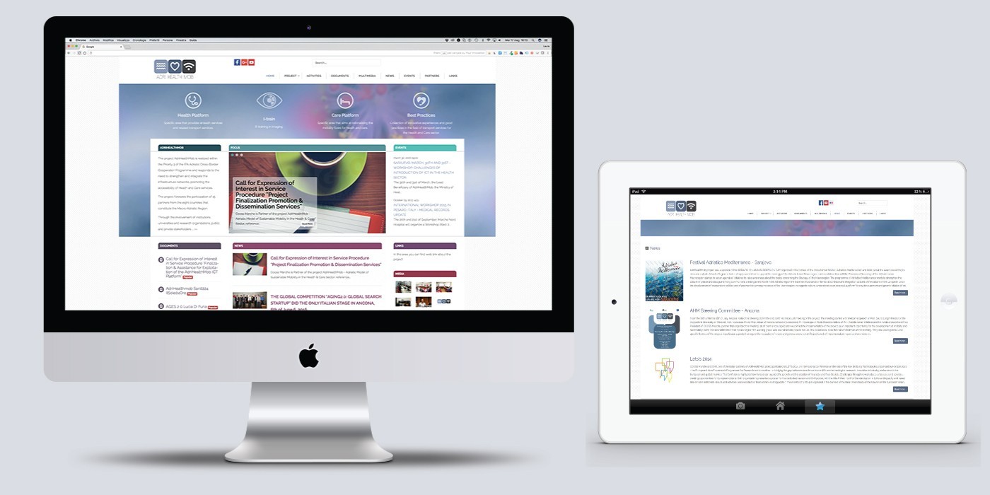 Design chiaro e pulito, navigazione semplice e funzionale, linee grafiche morbide e arrotondate: tutti elementi che concorrono agli obiettivi del sito web del progetto Adrihealthmob: chiarezza espositiva ed efficacia informativa.