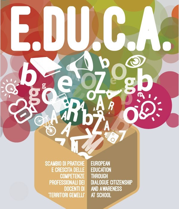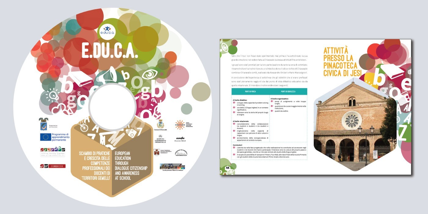 Forme rotonde e morbide, design fresco e brioso dove figure geometriche contengono immagini ed esperienze di allievi provenienti da contesti sociali, culturali e linguistici diversi. La copertina e le pagine interne della pubblicazione si tingono dei colori dell'infanzia per rappresentare la gioia di una avventura di scambio ed interculturalità.