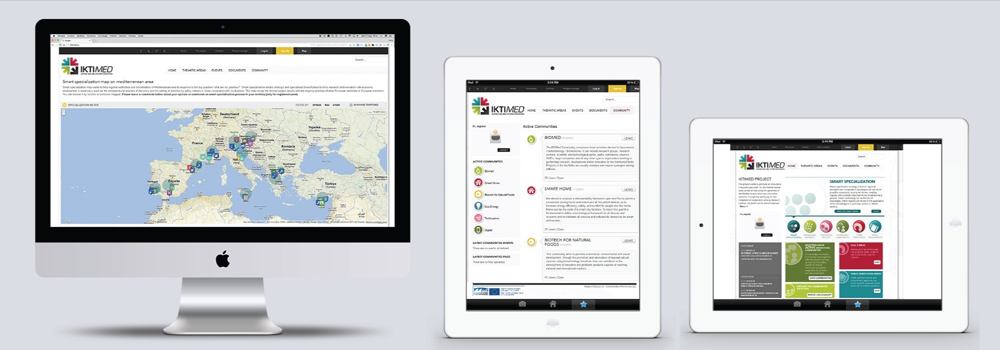 Rappresentare i processi di innovazione non è una cosa facile, Zerogravità per farlo si è concentrata sul concetto di forza che simbolicamente esprime il moto centripeto e centrifugo delle idee che si muovono da e verso la società. Colori decisi e segno robusto, il logo del progetto Iktimed evoca anche i concetti di orientamento e direzione che le politiche di innovazione dei paesi dell'area MED stanno prendendo nei confronti delle politiche di condivisione della conoscenza.